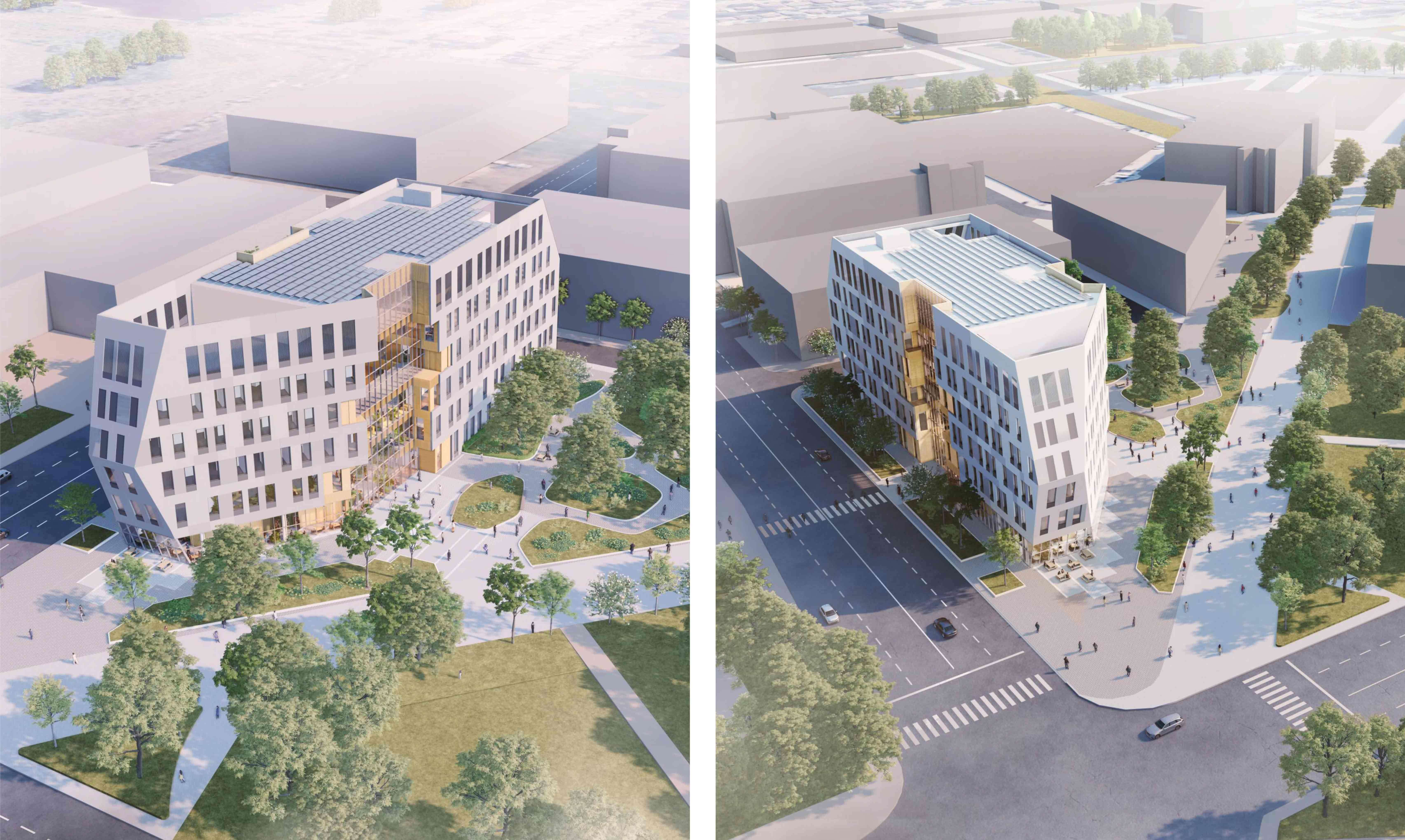 The new building will serve as the entrance to the university’s 1265 Military Trail campus. Native plants, Indigenous planting, and water motifs will be defining elements of its landscape design, helmed by Vertechs Design Landscape Architects and inspired by Highland Creek Valley.
