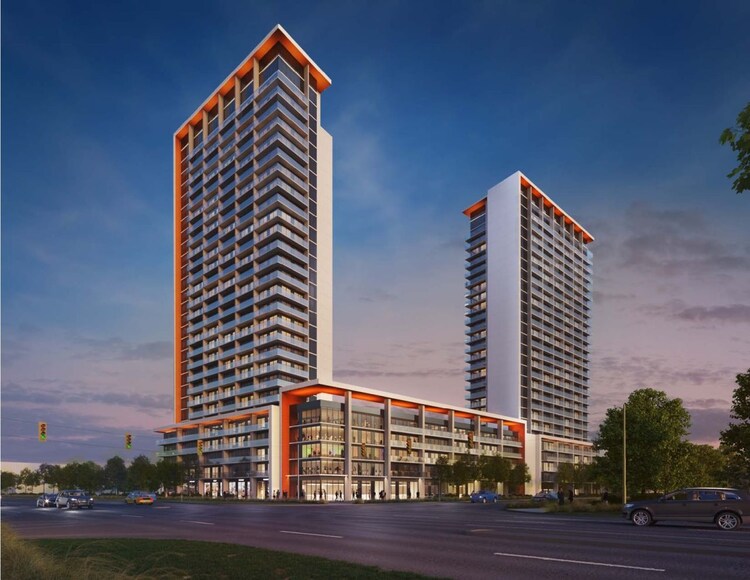 11-37 Jacob Keffer Parkway: a proposed 23 & 23-storey residential building designed by Ware Malcomb Architecture for Mosaik Homes (operating as 'Alvit Developments' & 'Robvit Developments') on the southeast corner of Rutherford Road and Jacob Keffer Parkway in Vaughan's Sherwood–Rutherford neighbourhood.