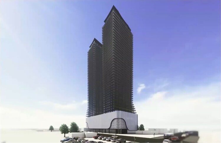 126-140 Bradford Street: a proposed 45 & 45-storey mixed-use residential & retail building designed by Kirkor Architects for Crown Communities on the west side of Bradford Street, south of Victoria Street and north of John Street in Barrie's Sanford—Allandale neighbourhood.