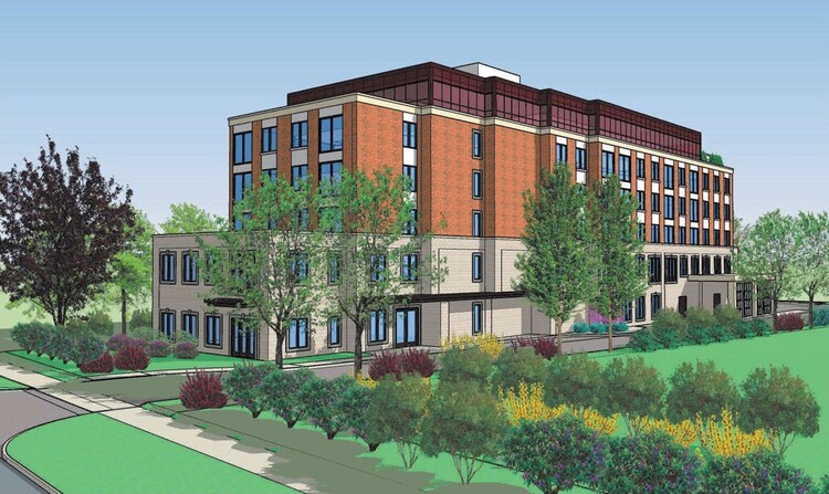 1295 Sixth Line: a proposed 6-storey residential building designed by Rick Brown & Associates for Creditmills Development Corp on the east side of Sixth Line, south of McCraney Street East in Oakville's College Park neighbourhood.