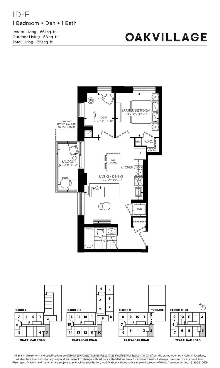 Absolutely stunning! Corner unit boasts 1 Bedroom + Den (Consider as second bedroom/office area), and 1 bathroom. The unit is 661 sq. ft. in total, Outdoor Living(Balcony) 58.sqft with 719 sq. ft. of living space. The unit is carpet-free and features keyless entry. One parking spot is included(underground). The open-concept living space is filled with natural light from the floor-to-ceiling windows. The gorgeous kitchen features a breakfast bar, backsplash, and brand-new stainless-steel appliances. The location is excellent, with only a ten-minute walk to a huge plaza with everything you could possibly need, including public transit, Walmart, Superstore, shopping, restaurants, banks, and more! The 403 and 407 are just a short drive away. **** Immediately Available ****