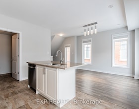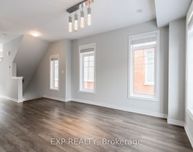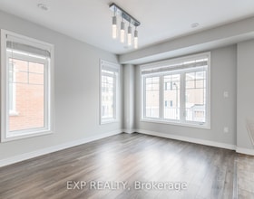 This townhome is in a great location, backing onto a park. It has 3 bedrooms, 1.5 bathrooms, and a finished basement. Tandem parking for two on the dr
