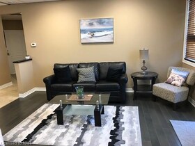 Available, one Bedroom furnished Apartment, above a Commercial Building/Marina, in Grimsby. Kitchen, Dining, Living Room and Bathroom. Stackable Washe