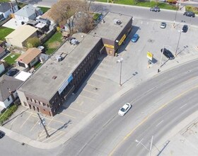 Solid mixed-use building across from Delta High School development. Neighbours include End Zone, Pizza Pizza, Bear Alignment, Kal Tire, Esso and local
