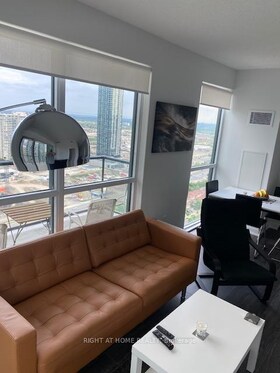 Furnished (OR UNFURNISHED)9 Feet Ceilings, Unit Features A Massive Outdoor L-Shaped Balcony, Spacious Open Concept W/ Laminate Flooring Throughout Li