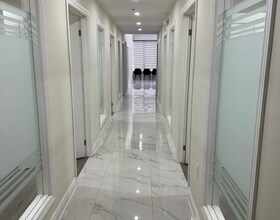 Only Main Floor For Rent! Brand new professional office unit available for lease featuring 7 large private offices, reception area, private kitchen, a