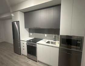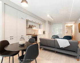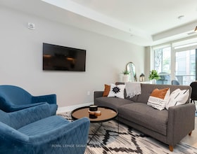 Stunning building in the heart of the east end. Upgraded Fully furnished 1 Bedroom Suite With 9 Foot Ceilings, Hardwood Floors, Integrated Sleek Moder