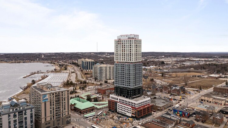 Welcome to Debut Condominiums, a stunning addition to the Downtown Barrie skyline. Enjoy breathtaking scenic views, indulge in the vibrant downtown dining scene, take leisurely walks around Kempenfelt Bay, and experience the ultimate convenience with the GO Train and GO Bus Terminal just steps away. Suite 1907, perched on the 19th floor, stands tall above the city, offering unparalleled panoramic views of both the bay and the bustling downtown life. This beautiful suite features 1 bedroom and 1 full bathroom. The sleek kitchen is equipped with high-end built-in appliances and a versatile movable island, perfect for meal prep and entertaining guests. The unit also includes a parking space, in-suite laundry, along with a private balcony to soak in the fresh air and enjoy your view. Exclusive amenities include a stylish outdoor amenity space with barbecues and a firepit for cozy evenings, an infinity plunge pool offering unobstructed views of the stunning waterfront, and a chic bar and lounge area with both indoor and outdoor dining spaces, designed for entertaining guests in style.
