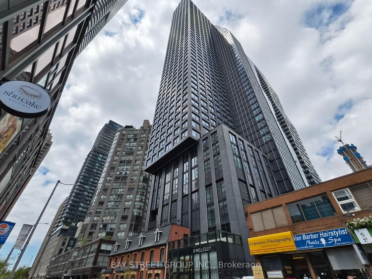 This 1-Bedroom Condo in Prime Downtown Toronto. Welcome to this luxury residence at the iconic Yonge & Wellesley corridor. Located on the 39th floor, this 489 sqft suite features a functional open-concept layout with modern finishes, built-in appliances, floor-to-ceiling windows, and breathtaking east-facing views of Yonge Street, the city skyline, and glimpses of Lake Ontario. Just steps from Wellesley Subway Station, this unbeatable downtown location offers quick access to U of T, TMU, and the Financial District. The bedroom features a window for natural light, and the spacious bathroom enhances everyday comfort. Residents enjoy 24-hour concierge service, guest suites, smart parcel storage, and over 21,000 sq ft of exceptional amenities, including a fitness centre, yoga studio, rooftop terrace, co-working spaces, and more. Experience elevated urban living in the heart of Toronto. Photos from previous vacancy, property currently tenanted.