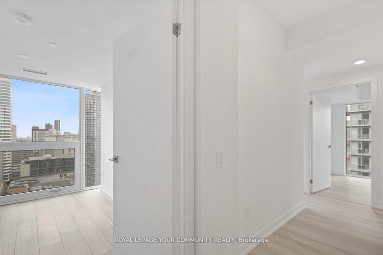 Welcome to 199 Church Street! This bright and modern 2-bedroom, 2-bathroom unit features a functional layout with sleek neutral finishes throughout. The kitchen offers stylish cabinetry, a herringbone backsplash, and integrated appliances. Floor-to-ceiling windows provide beautiful city views, including St. Michael's Cathedral. Conveniently located steps to TMU, University of Toronto, George Brown College, subway and TTC, as well as Eaton Centre and Yonge-Dundas Square. Enjoy 24/7 concierge service and premium building amenities, including a gym and outdoor lounge.