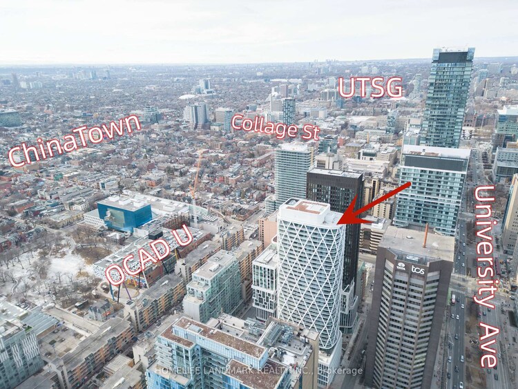South-West Corner Suite. Featuring 3 bedrooms, 2 bathrooms of Functional Space in the Luxurious Artis Alley Condo in DT core, near Dundas & University. Spacious and Open-Concept Layout with 876 Sqft of Interior Living Space. Laminate Floorings Throughout. Floor to Ceiling Windows Offer Natural Light Throughout. Modern Kitchen With Quartz Countertops, Built-In Appliances, Wrap around balcony, with access from living room and bedroom! Steps To TTC Subway, OCAD University, Queen's Park, the AGO, Major Hospitals, Restaurants And Shopping, Financial District and Much More