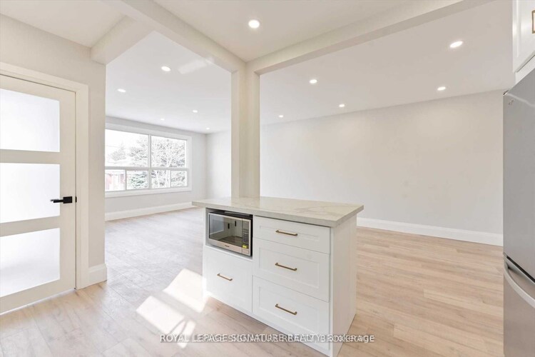 Completely renovated with meticulous attention to detail this spacious 900sq.ft + unit features luxury vinyl fooring, pot lighting, quartz countertops with central island, SS appliances, ensuite laundry, integrated security camera and smart doorbell, private entrance & shared backyard. Steps to transit, Eglinton shops/restaurants and EZ highway access!