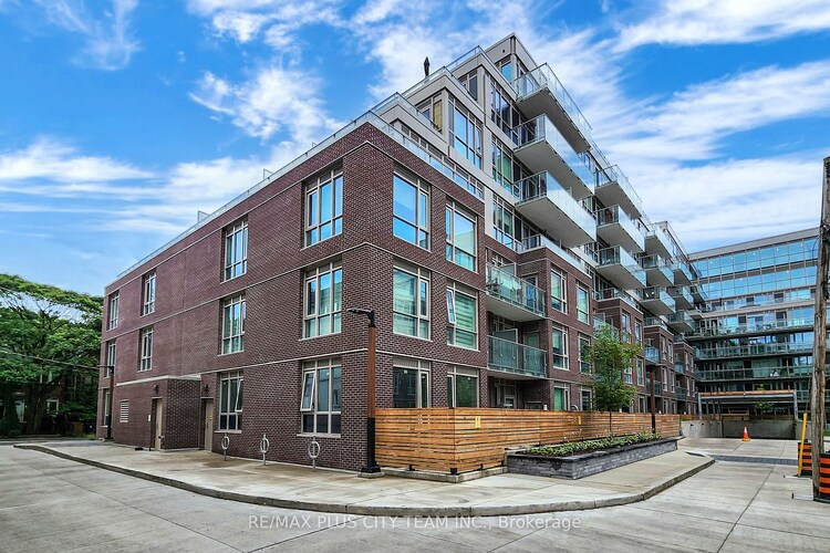 Welcome to Wonder Condos - perfectly situated in Leslieville, this vibrant 1 Bedroom plus den, two Bathroom features a great layout with 9 foot ceilings. The open-concept Living/Dining Room flows seamlessly and leads to an incredible 213 sq ft private terrace, an absolute highlight of the unit. With quiet views of the courtyard and the city skyline, the terrace is your own personal retreat where you can unwind and enjoy spectacular sunsets every evening. It's the perfect extension of your living space and offers a serene escape right outside your door. The contemporary Kitchen features integrated appliances and quartz counters. The bright primary Bedroom with views of the Terrace includes a double closet and 3 piece Bathroom. The private Den is perfect for an extra living space or office. The unit is completed with a 4-piece Bathroom with upgraded tiles, Laundry closet and Hallway Closet. Two lockers provide more storage space as well. An unparalleled location just steps away from Queen Street East, Restaurants, Cafes, Jimmy Simpson Park & a short drive to Downtown Toronto, Waterfront Trails and major highways. Full Gym, Large Co-Working Space, Convenient Dog Wash Station, Visitor Parking and Secure Bike Storage are just some of the amazing amenities offered by this iconic building that was seamlessly integrated with the renowned Wonder Bread Factory ! **Photos are from when the unit was vacant and some have been virtually staged**