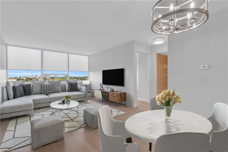 Unit 1111 is the penthouse you've been wishing for.This stunning 2-bedroom, 2-bathroom Regency penthouse suite was completely renovated in 2025. This 1000 sq. ft. unit boasts:- 2 spacious bedrooms, including a large primary with walk-in closet and 3-piece ensuite.- a second 4-piece main bathroom.- Bright, open-concept living area with spectacular views of Kitchener's core.-modern, in-suite laundry for added convenienceEnjoy the ultimate in luxury building amenities, including:- Indoor pool and hot tub- Sauna and exercise room.- Library and party room.-Stunning views of the surrounding mature forested area.Sits on an almost 3 acre lot!Additional features include:- 1 underground parking space- 1 locker for storage- Available for immediate occupancyConveniently located just minutes from Fairview Park Shopping Mall, Restaurants, Cineplex, Home Depot, Costco and many other retail/amenities.