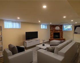 The property is located on 2 level acres with no floodplain, the brick bungalow with a double detached garage is an ideal for those looking to lease t