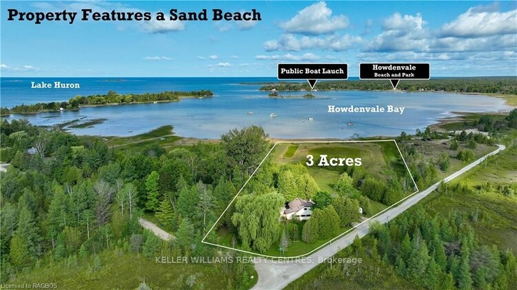 Say hello to the Sandy Shores Retreat at 21 Tyson Lane, a stunning secluded property with its very own waterfront. Perfect for cottaging or year-round living, this home nestled on a picturesque 3-acre property has all the comforts of modern living. The property boasts its very own pristine sand beach, offering exclusive access to the shimmering waters of the protected Howdenvale Bay. Spend sun-kissed days lounging on your convenient private beach, building sandcastles, swimming, and basking in the warm sun. With the public boat launch just across the bay, explore the beautiful waters perfect for fishing, boating, or sailing. This house has had extensive renovations completed in the last 3 years. Inside was taken back to the studs, with new wiring, new plumbing, reinsulated, drywall, wood accent walls/ceilings, an outdoor shower, an upgraded water system, and an extensive bathroom renovation for a touch of luxury. Updated exterior with a new front deck. The cottage interior and back deck now offer views of Lake Huron, thanks to recent tree cutting and pruning. The house features a range of beautiful wood accents, blending rustic and modern charm. The living room's wood-burning fireplace is set in natural stone. The property also features a full shop and 4 driveways. Don't worry about future development with neighbouring areas, as this property is surrounded by over 81 acres of Petrel Point Nature Reserve, securing your future privacy and the area's natural beauty. After a day enjoying the shallow and sandy waters perfect for families, watch the iconic South Bruce Peninsula sunset at the west-facing beach. At night, gather around the crackling fire pit under the starlit sky, where you can share stories and toast marshmallows. Whether it's a permanent residence, a weekend getaway, or an investment property, the Sandy Shores Retreat is a haven to relax and enjoy waterfront living. Don't miss the opportunity to own this property today!