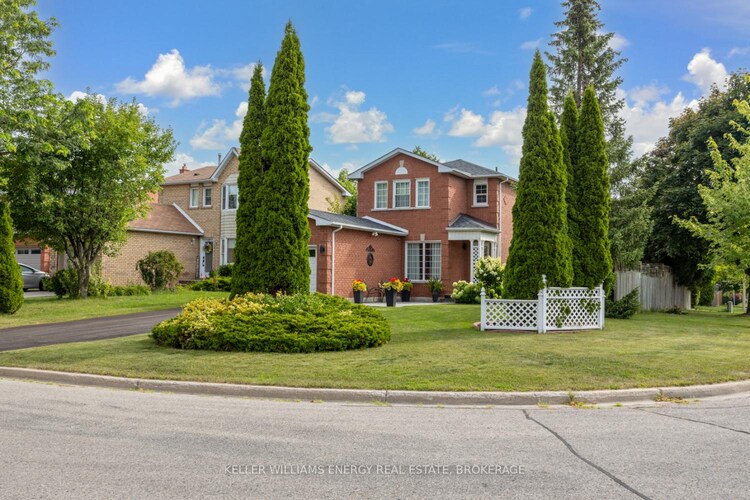 Gorgeous, well-maintained 3 Bed + Den & 3 Washroom with a single car-garage and extended driveway, located in the heart of Beautiful Bowmanville. This modern two-story, full-brick corner lot Home boast on laminate flooring throughout except master bedroom and stairs. A stone-finished pathway leads you to the main entrance, The bright Living room features large windows over looking the front entry. The kitchen is the standout, featuring Granite counter top, glass-front cabinetry, and a functional island eat-in area. The Cozy family room flows seamlessly in to the dining area, perfect for gatherings. Retreat to the primary bedroom, which offers large closet & 4pc Ensuite. The Finished Basement(2020) is designed for relaxation, featuring a dry bar, a fireplace, and a stone-accented stone wall for warm, inviting atmosphere. you'll also finding a large laundry room in this level. Fireplace and stone finished wall make the place warm. Large spacious laundry room. Step through the French patio door to deck and garden backyard-ready for your outdoor entertainment. No sidewalk. Basement done in 2020. Furnace 2022. A/C 2020. Paint 2025. Light Fixtures 2025. Don't miss out on this property.