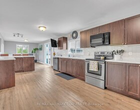 Spacious bungalow situated on a large lot with a newly landscaped yard and a detached double-car garage at the rear. It is conveniently located near g