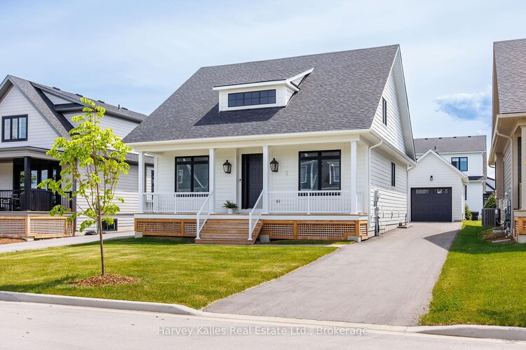 Luxurious and stylish, this bungalow showcases exquisite designer details that flow effortlessly from room to room. A striking modern chalet exterior, defined by crisp white and bold black accents, sets the tone. Enter into a welcoming interior, where a warm, curated palette meets thoughtfully integrated artistic elements. The grand main floor impresses with soaring vaulted ceilings, an expansive open-concept layout and engineered white oak hardwood floors. The kitchen highlights a waterfall island, built-in panelled appliances, custom hood range, InSinkErator and curated lighting. The living room is anchored by a stunning bespoke fireplace surround and enhanced by a built-in Sonos sound system. Retire to the main floor owners suite complete with a spa five-piece ensuite with a soaker tub and glass shower. A second bedroom, bathroom and laundry/mud room with stunning tailored millwork complete this level. Upstairs the loft provides two bright bedrooms and a full bath. The fully finished lower level expands the living space with a generous recreation area, two bedrooms, and a 3-piece bath, bringing the total to six bedrooms and four full baths across more than 3,200 sqft of living space.The heated garage is thoughtfully equipped with ski lockers, offering secure and convenient storage after a day on the slopes. Smart home technology enhances the lifestyle experience, with integrated control of lighting, climate, and security-including water detection alarms and top-tier Hikvision cameras-accessible from anywhere. As part of the Windfall community, owners enjoy exclusive access to The Shed, a four-season social hub featuring a heated outdoor pool, hot tub, sauna, fitness centre, and gathering spaces. Surrounding trail systems weave through scenic ponds, bridges, and forests, while skiing, golf, shopping, beaches, and fine dining are all just steps away. Four season resort living at its finest! This home must truly be seen in person, book your showing today!