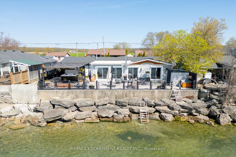 Truly Irreplaceable, Exquisitely presented Waterfront Lake House on the sought after South shore of Lake Erie offering a masterfully planned, Beautifully renovated 3 bedroom+1 bathroom Bungalow with attention to detail evident throughout. Rarely do properties Capture & Embrace the true feel of Lakefront Living! Incredible curb appeal with extensive concrete paver stone driveway & walkways. Backyard Oasis complete with stone effect concrete patio, pergola with decked entertaining area, solid breakwall, lakeside shed, & private stair access to sand bottom beach. The gorgeous interior layout emphasizes the stunning Waterview's, five sets of sliders, custom kitchen, bright dining area (fits 10+), vaulted great room with both corner gas fireplace & woodstove, 3 large bedrooms, additional bedroom / den area, welcoming foyer, upgraded 3 pc bathroom, & desired MF laundry. Bonus attached garage/utility room ideal for workshop & storage with auto garage door. Experience Waterfront Living.