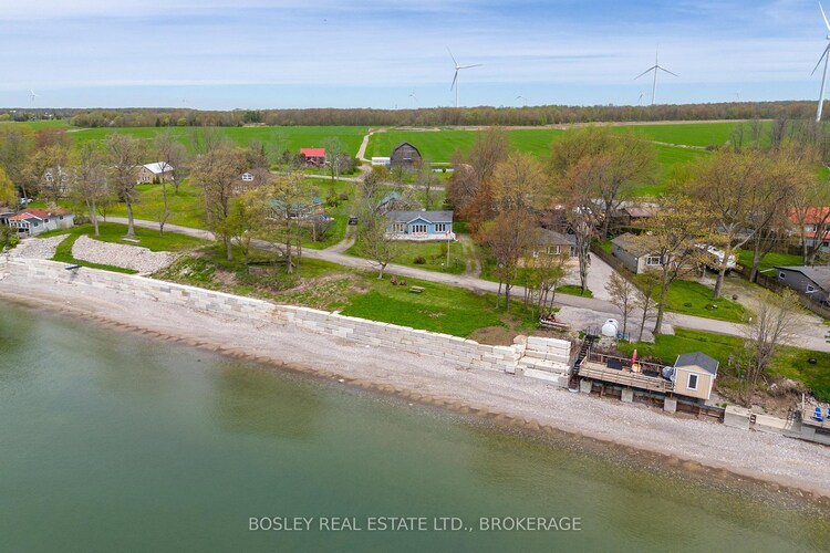 Waterfront retreat on a quiet road owning the north and south (waterside) of the road. This year-round 2-bedroom home offers the perfect blend of relaxation and recreation, featuring just over 70 feet of Lake Erie water frontage and 2022 Wilkinson built break wall, plus a natural sand and pebble beach for endless summer enjoyment. Step inside to a bright, open-concept living/dining/kitchen space highlighted by vaulted, beamed ceilings and a wall of windows showcasing lake views and awesome sunsets. The inviting layout is ideal for both everyday living and entertaining. The home includes a basement (1992) providing ample storage space and development potential, while the expansive deck is perfect for morning coffee or hosting family and friends against a beautiful waterfront backdrop. Plenty of driveway parking accommodates all your vehicles and recreational toys. Additional updates include roof shingles and the added peace of mind of a backup generator. A rare opportunity to own a lakeside escape-perfect as a year-round residence or weekend getaway!