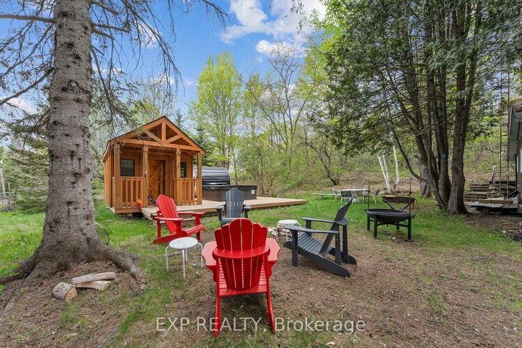 Adorable! The perfect getaway to cottage country is right here. Sitting on an acre, and within a short walk to the beach, is this extremely well-maintained 2 bedroom, year-round cottage. Extras include 3 bunkies/sheds, a hot tub, a sauna, and a fire pit. This place is set for entertaining or just a great place to unwind and get away from it all. The property is fully fenced and has a gated driveway. Horseshoe Lake is steps away, and you are around the corner from the beach. A concession line near the end of the property gives you additional access to the lake. This cottage has been a popular Airbnb in the past and gets great reviews. Licensing through the Township would be required to continue as a short-term rental. Horseshoe Lake is part of a two-lake chain connecting to Mountain Lake and is quick and easy to reach from Highway 35, only 7 minutes from the town of Minden on a year-round road. Check out the Minden White Water Preserve just down the road and watch the professional white-water kayakers or golf at the popular Blairhampton Golf Course. There is so much about this cottage and location that will make you want to never leave. Welcome to Cottage Country!