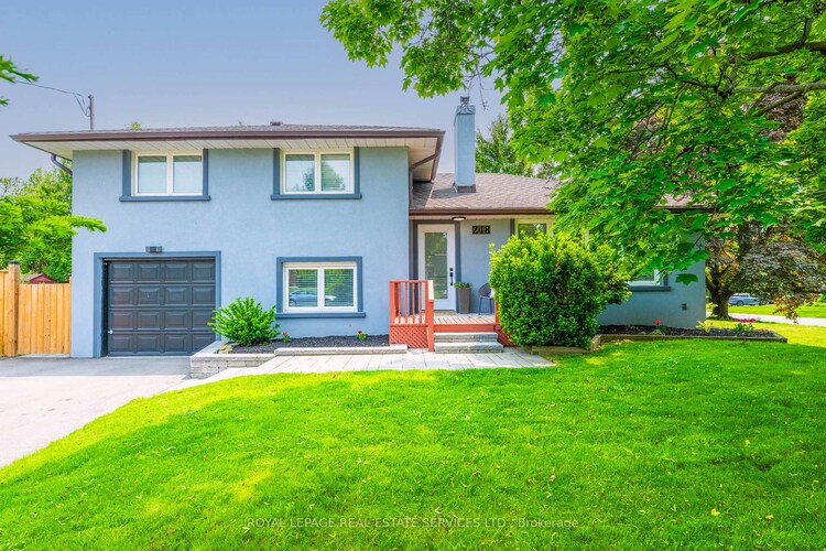 Beautifully upgraded detached home, fully renovated in 2023, situated on a premium 117 x 60 corner lot. This stunning residence showcases luxury finishes throughout, including engineered hardwood flooring and soaring 9.5-ft ceilings that enhance the bright, open-concept main floor layout. Flooded with natural light from numerous new thermal windows (2023) and beautiful stone fireplace, the home invites you in. The gourmet kitchen is a showstopper, featuring a marble range hood, expansive center island with abundant storage, and seamless flow into the living and dining areas-perfect for both everyday living and entertaining. Offering 4 bedrooms above grade, and three renovated full bathrooms (2023), there's room for everyone. The fully finished lower level includes a spacious mudroom, large laundry room, and additional living space, ideal for family or guests. Additional highlights include a one-car garage, two-car driveway, and a fully fenced yard with (new fence 2023) providing privacy and outdoor enjoyment. A rare pool-sized lot opportunity combining modern luxury, thoughtful design, and turnkey convenience.