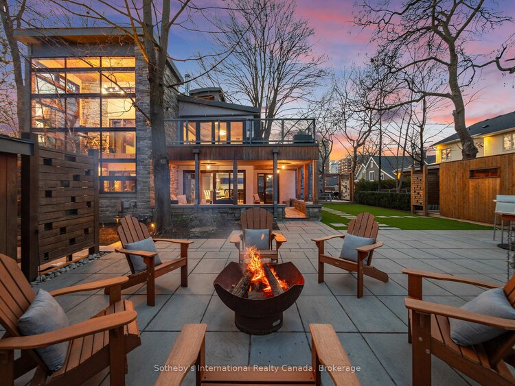 Set within Oakville's West Harbour, 55 Chisholm Street is defined by originality and intent. Located steps from Tannery Park and Lake Ontario, this home was conceived as a work of art for those who value architecture, sustainability, and livability in equal measure. Inside, innovation drives the home as much as artistry geothermal heating and cooling, energy-recovery ventilation, and rainwater harvesting provide modern sustainability without sacrificing comfort. Natural plaster walls, custom ironwork, and a sculptural three-dimensional stairwell create moments of discovery at every turn. A dramatic soapstone fireplace anchors the main level, where open living and dining spaces frame views of the landscaped grounds and flow around a Scavolini kitchen with Miele appliances. The second floor offers three bedrooms and two bathrooms, including a primary suite that opens to a private terrace overlooking the property. Above, a treetop lookout provides a quiet, elevated perspective above the neighbourhood canopy, marking an unexpected and compelling architectural moment. The lower level thoughtfully integrates the home's original stone foundation with contemporary function, housing a den, guest suite, full bath, gym, laundry, and a cedar-lined wine cellar. Outdoors, nine distinct gathering spaces await, designed for both relaxation and entertaining. A cedar sauna and outdoor shower invite quiet unwinding, while a fire pit and full outdoor kitchen create an effortless setting, surrounded by lush landscaping. With access to the lake, trails, and the shops and restaurants of Downtown Oakville 55 Chisholm Street offers a rare balance of privacy and connection. This is a home for those who value craftsmanship over convention, restraint over excess, and design that reveals itself slowly. Every material, surface, and hidden detail reflects a life lived with intention. Singular in vision and execution, it stands apart for the few who recognize extraordinary design when they see it.