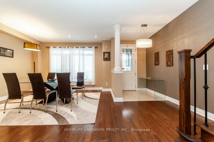 Luxury Executive 2-Storey Rosehaven Freehold Townhome in move-in ready condition, offering approx. 3,000 sq. ft. of thoughtfully designed living space and a professionally finished basement. Boasting 9-foot ceilings on the main floor and in the primary bedroom, this home is exceptionally well maintained and finished in elegant designer colors. Perfectly situated within walking distance to shopping plazas, schools, the Oakville Sports Centre, and scenic trails. Oakville Hospital and major highways are just minutes away, making daily commuting and errands a breeze. Interior features include California shutters, hardwood flooring throughout the main and upper levels, Berber carpet in the basement, an oak staircase, pot lights on both the main floor and basement, granite countertops, upgraded kitchen cabinets, stainless steel appliances, a gas stove, and a cozy gas fireplace. Convenient second-floor laundry with stacked washer and dryer adds to the functionality. Additional highlights include a heated floor in the covered hallway with direct access to the double-car garage, and an interlock patio with a built-in BBQ gas line - perfect for outdoor entertaining. This energy-efficient home is equipped with a high-efficiency furnace, a heat recovery ventilation (HRV) system, a power-vented water heater, central air conditioning, central vacuum, a smart thermostat, and Alexa-integrated dimmable LED lighting for modern comfort and control