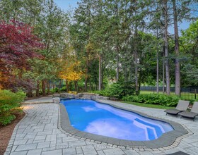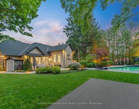 Stunning End-Unit Townhome in Milton, uniquely located next to a historic lodge showcasing a beautiful sunset view featuring optimal natural lighting