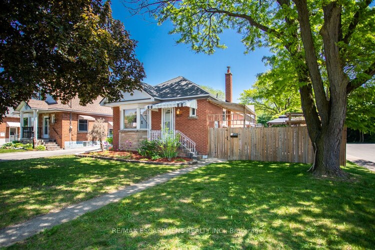 ?So much to love about this well maintained bungalow in mature east Hamilton neighborhood. Main floor features 3 bedrooms and hardwood flooring throughout. Kitchen with gas stove open to spacious living room with bright bay window. Recently renovated main bathroom ('21) with subway tile and vanity with quartz counter. Basement features IN-LAW set up with living room, stove, fridge, bedroom', 3-piece bath, gas fireplace, laundry and additional Storage. Low maintenance backyard with Extensive decking pergola, detached garage (shingles '23) and garden shed. Wonderful quiet area with large trees just steps to the Redhill trail and amenities galore. Tremendous value and a must see!