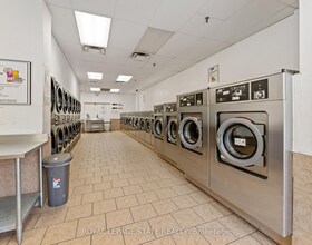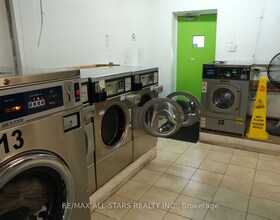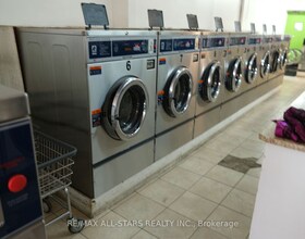Great stand alone building approx. 10,250 sqft divided into 2 units. First unit is approx. 1,000 sqft being used for a public laundry facility. Second