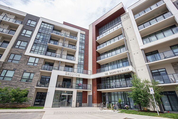 THE LAKE AT YOUR DOORSTEP. Welcome to Horizon's Sapphire, on the Shores of Lake Ontario! Start with this PENTHOUSE UNIT boosting 9' ceilings, great size DEN that can be your office, nursery, or even a spare bedroom, Great room fits your living room furniture and a dining table too. Laminate throughout the unit, to save you from those carpet allergies, and a bedroom that fits king size bed, with Walk-In closet and a partial lake view. Enjoy the lake view from the rooftop terrace, or simply step outside and walk, run, or bike next to the lake, and if it is too cold to go outside, there is a great gym for your convenience. Close to the new GO station & QEW access.