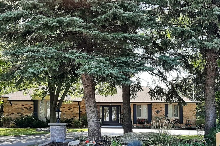 Discover luxury and lifestyle in this beautifully crafted custom bungalow, situated on an impressive 0.45-acre lot just minutes from downtown Waterdown. This home offers nearly 5,000sq. ft. of living space, featuring 5 bedrooms (3 on the main floor / 2 on lower level) and 6 bathrooms (3 + 3). The spacious design provides a flexible floor plan, ideal for a multi generational family or in-law suite. As you approach the property, you'll be greeted by oversized trees and thoughtfully designed landscaping, complemented by ample parking. The main entrance features custom doors and a covered front entry. The main foyer overlooks the sunken great room, which has French doors opening to the flagstone patio with an awning. The main floor also includes a private office, perfect for remote work, and a separate formal dining room. The open-concept kitchen and family room create an entertainer's delight, equipped with large glass sliders that lead to a bright sunroom. The family room features a stunning granite wall and a gas fireplace. The modern lower level is finished to perfection, featuring 2 spacious bedrooms, each with walk-in closets and personal 3-piece en-suites. The open-concept kitchen and family room flow seamlessly to a walkout patio, providing an excellent setting for relaxation. With a separate entrance and privacy, this lower level also has lots of room for additional family or as an in-law suite. Step outside to your own backyard oasis, complete with a cozy fire pit area and multi-level patios made of flagstone and interlock, all enclosed by a fully fenced yard for your private enjoyment. The professionally landscaped exterior features natural rockery and mature gardens, enhancing the home's impressive curb appeal. Agent related to the owner. Additional highlights include: - 2 kitchens and 2 laundry rooms- 2.5 car garage- Irrigation system- Backyard shed- A full-house generator.