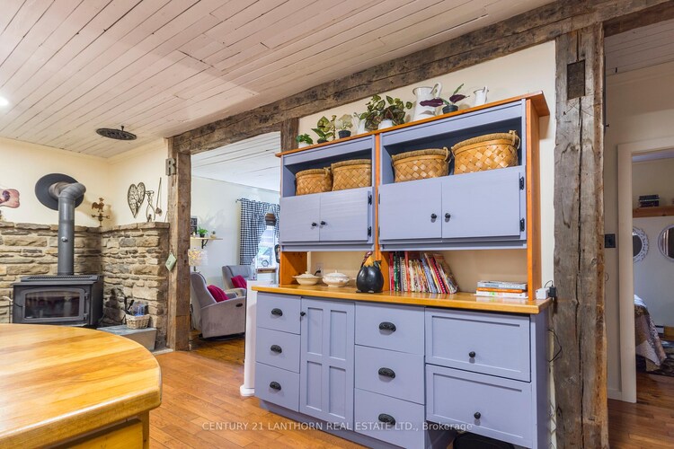 Escape to the peace and beauty of country living with this charming and versatile 3 bedroom, 2 bathroom home set in a tranquil rural setting with picturesque views throughout every season. Offering a flexible layout and thoughtful updates, this property presents a fantastic opportunity for families, multi-generational living, or potential income with a private in-law suite style setup. The main floor welcomes you with warm rustic charm featuring exposed log ceiling joists, beautiful exposed beams, and knotted pine flooring that create a truly inviting country atmosphere. The functional layout includes two bedrooms, two comfortable living areas, and a spacious country kitchen complete with a cozy wood stove, making it the perfect gathering space for family and friends. The entry area and updated 3-piece bathroom both feature heated floors, while a convenient utility and laundry room completes the main level. One of the living areas could easily be converted into an additional bedroom or home office depending on your needs. The upper level features a spacious primary bedroom retreat with skylights that flood the room with natural light, along with a bright 3-piece ensuite style bathroom that creates a peaceful and private space to unwind. Also located upstairs is a large family/rec room with more modern finishes, offering an entertaining space perfect for hosting guests, gatherings, or enjoying sporting events. Walk out to the private upper-level deck, an ideal spot to enjoy morning coffee while overlooking the peaceful countryside. Recent improvements include an upgraded boiler system, newer appliances, and refreshed interior finishes, providing added comfort and peace of mind. Combining character, flexibility, and scenic rural surroundings, this home offers a wonderful opportunity to enjoy country living with space for family, guests, or additional income potential.