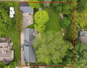 Endless uses. Duplex, single family or commercial. Property goes from street to street. Large treed yard, fenced on 2 sides. Home has 2 units complete