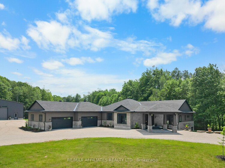 Experience YOUR OWN OASIS on over 40 acres of land. Welcome to this fully custom-built estate home, an extraordinary retreat designed to impress at every turn. As you approach via the private laneway, you're greeted by striking armor stone landscaping and a beautifully designed interlock entrance, setting the tone for the elegance and charm that awaits. The exterior offers everything you need for work, play, and leisure. A heated vaulted 5-car garage with drive-through access, hot/cold water supply, wired for EV charging, very own pickel ball court and direct entry to both the home and basement makes everyday living incredibly functional. A separate 2400sq/ft fully heated detached shop equipped with 200 amp service , water, bathroom, kitchen and a hoist is perfect for all your toys, tools, and ambitious projects. Enjoy a covered, vaulted screened in outdoor dining/lounging area overlooking a saltwater pool accessible from beautiful 12ft patio doors creating seamless indoor-outdoor living. Inside, the home exudes sophistication and craftsmanship. Expansive living spaces offer stunning views of the backyard and pool. The custom kitchen is a true showpiece, featuring high-end millwork, indoor bbq/grill, 2 convection ovens, a large walk-in pantry with a built-in bar and second fridge, full door fridge and freezer, 2 Fisher Paykel dishwasher drawers, coffee center, toaster center & pet center with their very own water tap: a true masterpiece. With 4 bedrooms and beautifully appointed custom his & her bathroom ensuite, every inch of this home has been thoughtfully designed for comfort and style. This is not just a home its a lifestyle. Truly custom. Truly unforgettable. See attachments for a full list of features, they will blow your mind.