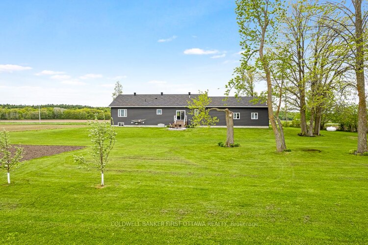 New 2022 bungalow with upscale quality and curb appeal on 1.5 country acres, just outside the friendly village of Pakenham. Welcoming Trex verandah is first of many desired features this superior-built 3 bedroom, 2 full bathroom home offers. Sunny spacious open plan with 9' ceilings. Luxury vinyl plank floors flow thru main level. Livingroom showcases Nantucket Eldorado stone fireplace that has propane insert with big glass face and reflective back, creating mesmerizing fire. Custom Dell windows have wide sills due to thickness of upgraded insulated ICF walls. Dining area patio doors to patio. Kitchen sparkles with all its modern detailing including Alaska solid wood cabinets, under counter lighting, beveled subway backsplash and upper glass display cabinets with interior dimmer lights. You also have built-in charging station for electronics. The family chef will appreciate Zline propane stove with pot filler and electric double ovens plus, grand island-breakfast bar. Impressive Butler's pantry has granite counters, Alaskan cabinets, microwave nook and coffee station with pot filler. The spa primary suite retreat has large windows for peaceful country views; walk-in closet with tiered rods, cabinets and pot lights. The 5-pc ensuite's cabinets flank two-sink granite vanity; two-person soaker tub with floor mounted waterfall faucet; glass shower body spray & rain head. Two more bedrooms, 4-pc bathroom, laundry room and mud room. Lower level polished concrete floor in expansive family room and rec room plus, sliding barn door to exercise room. Lower level partly finished, awaiting your finishing plans. Hot water on demand. Hookup for a portable generator. Attached heated insulated 3-car has finished drywall and overhead propane heater; inside entry to both main and lower levels. Large vegetable garden. Bell high-speed. Cell service. On municipal maintained road with curbside garbage pickup and school bus route. 10 mins to Pakenham golf course & ski hill. 25 mins Kanata