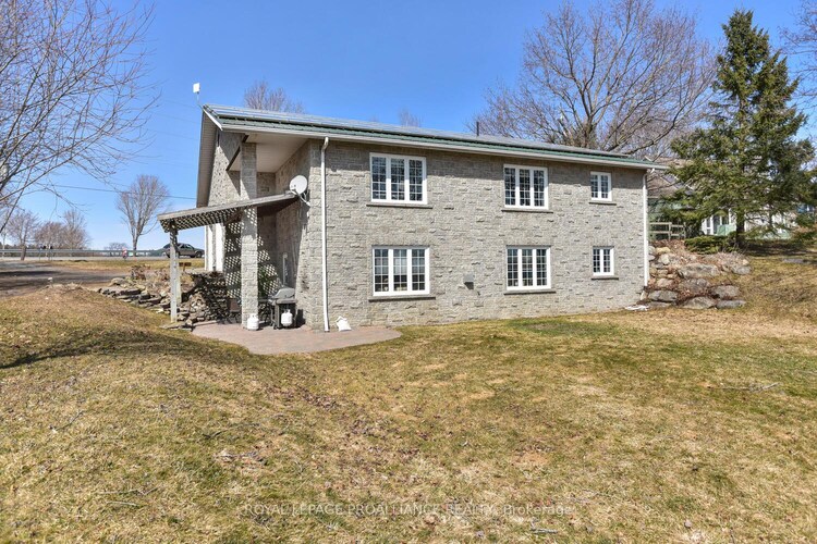 Built in 2003, this solid stone bungalow is ideally situated in Johnstown, offering spectacular, unobstructed views of the majestic St. Lawrence River-without being directly on the water. Backing onto protected wetlands, the setting ensures these remarkable views will remain preserved for years to come.Designed with exceptional versatility, the home is currently configured as a bungalow with a legal lower-level apartment, making it an excellent investment opportunity. Both levels are rented to wonderful tenants who wish to stay. Each unit mirrors the other in layout, featuring two spacious bedrooms, a 4-piece bathroom, laundry, and an open-concept kitchen, dining, and living area that captures the river views. Built on grade, the bright lower level offers a walk-out and functions more like a second main floor than a traditional basement. Soundproofing between levels enhances privacy, while each unit enjoys direct access to its own side of the attached double garage.The upper level features beautiful hardwood flooring, while the lower level offers recently updated ceramic tile and carpet in the bedroom. Important updates include a metal roof (2003), furnace and water heater (2017), and newer dishwashers (2023 and 2024), with approximately four years remaining on the solar panel contract. Whether you are seeking a solid income property, a solution for extended or multi-generational living, or the option to live on one level while off setting your mortgage with rental income, this home delivers outstanding flexibility. With some modifications, this home could also be reconfigured to a single dwelling, complete with a double-car garage, offering even more flexibility for the next owner. High-speed internet is available, and the property is conveniently located on County Road 2 with quick access to Highways 401, 416, and the International Bridge-making commuting effortless.