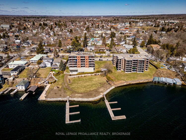 Experience the pinnacle of riverfront elegance at the prestigious boutique Park Lane Condominiums. This meticulously updated 2-bedroom plus den, 2-bathroom residence offers a rare combination of modern luxury and the timeless tranquility of life on the St. Lawrence River. Designed for the discerning buyer who values both aesthetic precision and a connection to nature, this unit serves as a sanctuary in the historic heart of Gananoque.Upon entry, you are greeted by an expansive, sun-drenched floor plan characterized by an airy, open-concept design. The interior aesthetic is defined by a neutral, sophisticated palette that allows the panoramic southern views of the river to take centre stage.A culinary masterpiece featuring gleaming stone countertops, premium stainless steel appliances, and a crisp white backsplash that reflects the abundant natural light.Seamless transitions lead from the dining area to a sprawling living space, culminating in a private balcony. It is the quintessential vantage point for morning espresso or evening cocktails while watching the world-class yachting culture drift by. A generously proportioned primary suite featuring a spacious walk-in closet and a spa-inspired ensuite, complete with a contemporary glass-enclosed shower.A bright, dedicated den provides the ideal footprint for a home library or executive office, complemented by a secondary bedroom and an immaculate four-piece guest bathroom.Life at Park Lane extends beyond your front door. Residents enjoy a suite of premium conveniences designed for effortless living. A private boat dock provides immediate entry to the world-renowned 1,000 Islands.Includes underground parking, a dedicated storage locker, and elevator access.Situated steps from the Thousand Islands Playhouse, fine dining, and boutique shopping. While Gananoque offers a serene pace of life, the historic charm and urban amenities of Kingston are a mere 20-minute drive away. Available for immediate occupancy.