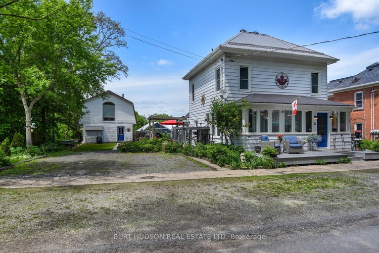 Welcome to this beautifully reimagined century home, where timeless character meets thoughtful modern design. Extensively renovated in 2009/2010, the interior was completely rebuilt with updated wiring, plumbing, insulation, windows, doors, flooring, kitchen, and bathrooms, offering the charm of a historic home with the comfort, efficiency, and peace of mind of a newer build.The main level features a bright, open-concept layout ideal for both everyday living and entertaining, highlighted by a convenient main-floor bedroom with cheater ensuite. Upstairs, you will be blown away by an entire level dedicated to a stunning primary retreat, complete with a den, walk-in closet, and a 4-piece ensuite, creating the perfect private space to unwind. Step outside to enjoy generous outdoor living spaces, including a welcoming composite front porch, perfect for morning coffee, and a private side deck with a built-in privacy wall, ideal for hosting family and friends. The property also includes a versatile two-storey workshop with its own electrical panel, high ceilings suitable for all projects, and excellent upper level storage making it perfect for hobbyists or additional workspace. Located in the heart of Portland Village, this home is within walking distance to all amenities, including the public beach, library, local shops, and popular dining spots like the Portside Pub and Eatery and Recess Café, along with everyday essentials such as the LCBO, bank, and grocery store. Centrally positioned between Ottawa and Kingston, and just 20 minutes to Smiths Falls, this location allows you to enjoy the charm of small-town living while staying within easy reach of larger urban centres. Whether you're seeking a full-time residence or a charming escape, this exceptional property offers the perfect balance of character, comfort, and community...an opportunity not to be missed.