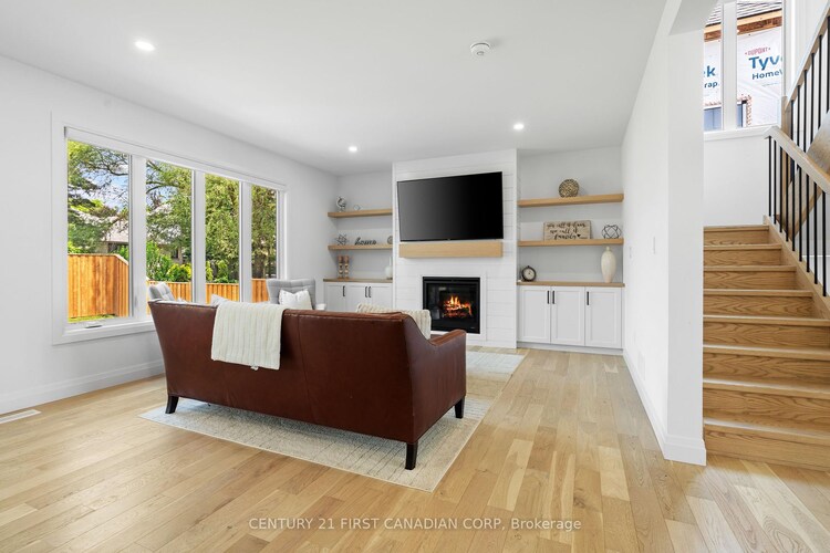 Custom-built by Castell Homes, this exceptional 4+1 bedroom, 4.5 bath home is located in the prestigious Boler Heights community in London. Set at the end of an exclusive court, it offers over 3,190 square feet above grade and 1,168 in the lower level for a total of over 4,300 square feet of finished space on a fully fenced, spacious lot with a complete Rain Bird irrigation system. The open-concept main floor features a great room with gas fireplace and custom built-ins, a chef's kitchen with quartz countertops, large island, gas stove, walk-in pantry, and a butler's pantry with bar fridge connecting to the formal dining room. A private office, mudroom, and powder room complete the level. Upstairs includes four bedrooms, each with bathroom access, including a luxurious primary suite with a walk-in closet and spa-inspired ensuite. A convenient laundry room adds practicality. The finished lower level offers a spacious rec room, games area, fitness room, fifth bedroom, and full bath. A covered 22' x 12' deck overlooks the backyard. Located close to Byron, Optimist Park, and Westwood Power Centre, with easy access to Highway 401.