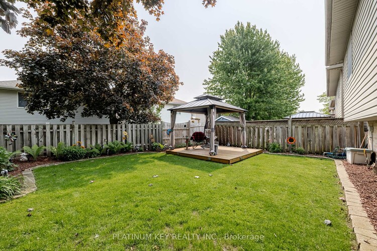 Welcome to this lovely raised ranch located at 29 Dell Drive, Strathroy, where comfort meets convenience! Freshly painted throughout the main areas of the home, boasting an inviting open-concept main floor, perfect for both relaxing and entertaining. As you enter, you'll be greeted by a spacious living area that flows seamlessly into the eat-in kitchen, creating a warm and inviting atmosphere. The primary bedroom features a convenient cheater ensuite, making morning routines a breeze, while two additional bedrooms provide ample space for family or guests. Venturing downstairs, you'll discover a versatile Rec room that offers endless possibilities...ideal for a home theatre, play area, or additional living space. This level also includes a cozy bedroom, a four-piece bathroom, and a laundry area, providing functionality and comfort. Outside, enjoy the serenity of your backyard oasis featuring a gazebo with a deck, perfect for summer gatherings or quiet evenings under the stars. The property is equipped with an inground sprinkler system plus sand point, installed just three years ago, ensuring your lawn stays lush and green. Additional highlights include a single-car garage, updated roof shingles (approx. 8 years ago) and an updated front window. Don't miss the opportunity to make this raised ranch your own; schedule a viewing today and experience all the wonderful features this home has to offer!