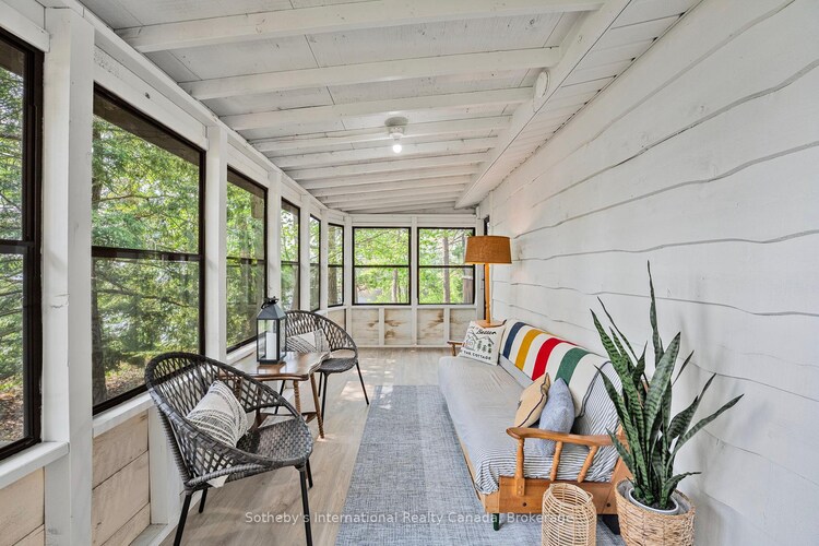 Private Point Retreat with Panoramic Sunrise & Sunset Views. Welcome to your dream getaway, perfectly positioned on a private point of land with uninterrupted lake views from sunrise to sunset. This idyllic cottage offers all-day sun and unmatched privacy, with no neighbouring docks in sight just you, the water, and the sky. Spend long, sun-soaked days on the dock, where you can leap into deep water from the end or wade in gradually via the shallow, sandy shoreline ideal for little ones. Evenings are just as magical, gathered around the landscaped lakeside campfire, stargazing with loved ones. Step inside through the charming sunroom/mudroom, an inviting space to enjoy your morning coffee while soaking in the view. The open-concept interior features a spacious great room with vaulted ceilings, seamlessly blending the kitchen, breakfast bar, dining, and living areas all with stunning lake vistas. The cottage offers three bedrooms, including two with vaulted ceilings for added charm and a bunk room made for childhood adventures and sleepovers. Step outside to a partially covered deck perfect for lounging, BBQs, and al fresco dining. Paddle across the lake to a nearby beach and park, or stay in and enjoy excellent fishing and watersports right from your own shoreline. Located just 5 minutes from the local grocery store, hardware store, LCBO, and restaurants, and a short drive to Parry Sound, Bala, and Port Carling, this is the ultimate blend of seclusion and convenience. Cottage memories begin here.