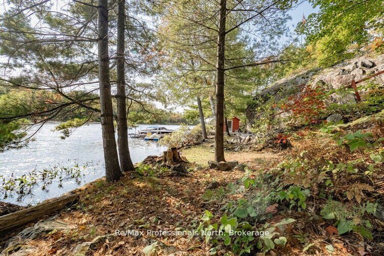 A rare opportunity to own a stunning lakefront building lot on beautiful Pine Lake in Muskoka, just 90 minutes north of Highway 401. This exceptional property features 113 feet of pristine waterfront and 230-foot depth, offering over half an acre of south-facing land surrounded by mature trees. Natural granite terraces and stepping stone stairs lead to the water's edge, creating a picturesque setting for your future cottage. Unlike many vacant lots, this property already includes key infrastructure improvements, making it ready for development: a) Hydro service with a 100-amp electrical panel located in the utility shed b) Waterline and pump system drawing directly from the lake c) Septic tank and septic bed installed. Enjoy the lakefront with the existing dock with boat lift, plus a natural shoreline featuring a step-in sandy-bottom swimming area and a charming waterside Bunkie/cabin furnished with a futon, pine table, bar fridge and folding chairs. Perfect for relaxing by the lake while planning your dream cottage. Pine Lake offers a peaceful, low-density environment, with over 50% of the shoreline protected as conservation land, ensuring long-term natural beauty and privacy. The lake is ideal for boating, swimming, and excellent fishing. Additional property benefits include- deeded access to a shared lakefront lot at the end of Muriel Crescent for small boat launch, and for large boat launch access at Pine Lake Cottage Resort. This is a rare chance to secure a prime piece of Muskoka paradise - Just Add Your Dream Cottage. Don't miss the opportunity to explore this exceptional lakefront property opportunity.
