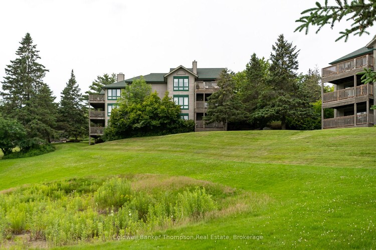 Your Muskoka Escape Awaits! Discover effortless, year-round relaxation in this charming top-floor corner 1-bedroom, 1-bath condo at the renowned Deerhurst Resort. Offering over 650 sq. ft. of stylish living space, this inviting suite is perfect for those seeking a peaceful Muskoka retreat paired with the conveniences of resort living. A natural gas stone fireplace brings warmth and character to the living room, complemented by beautiful hardwood flooring throughout. The kitchen features granite countertops, stainless steel appliances, and a convenient in-suite laundry closet for everyday ease. The spacious primary bedroom provides a serene sanctuary to unwind, while the main living area opens to a large private deck overlooking the lush golf course-ideal for morning coffee or evening relaxation. A private exterior storage closet just outside the entrance offers ample room for seasonal items. Recent condo board updates-including a new roof, windows, sliding doors, and deck replacements. Enjoy an unmatched Muskoka lifestyle with resort amenities at your doorstep: a golf course, sandy beach, luxurious spa, fine dining, and year-round recreational activities. Owners also enjoy restaurant and spa discounts. Condo fees include water, sewer, natural gas, internet, parking, and access to many resort amenities, making this a seamless, worry-free way to embrace Muskoka living. Your carefree Deerhurst getaway is here; move in and enjoy. **No HST as this unit is not on the Deerhurst rental program. **