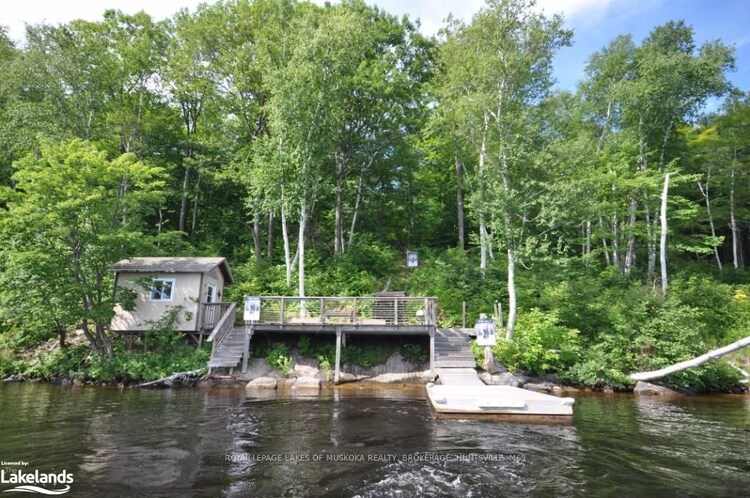 Welcome to 748 Big Island a newly built, beautifully finished cottage nestled on the coveted shores of Lake Vernon, part of Huntsville's desirable 4-lake chain. Completed in 2025, this approx. 1,200 sq ft retreat blends classic Muskoka charm with modern features and is surrounded by unspoiled crown land, offering rare privacy and an untouched natural setting just minutes from town. Inside, you'll find soaring ceilings, solid wood shiplap throughout, vinyl flooring with cozy area rugs, and a sun-filled open-concept living space. The kitchen features white Corian countertops, a large island, new KitchenAid and LG appliances, and sleek cabinetry. The cottage includes 3 bedrooms (including a spacious loft) and 2 full bathrooms, with a primary suite offering a private ensuite. Outside, enjoy 200 feet of pristine, south/west-facing shoreline with all-day sun & into the evening on the dock, crystal-clear water, granite outcroppings, and a small pebble beach - all framed by mature white birch trees. Two brand-new 12x20 NyDock systems from Pipefusion include an upper deck landing, perfect for swimming or entertaining. A valid permit remains for a 400 sq ft deck a chance to build out your dream outdoor space. Fully insulated, with hydro and a proper septic system, this property is completely turn-key and move-in ready. Your private boat slip and parking at the marina are paid for the 2025 season, offering quick and easy island access in under 10 minutes by boat. A rare opportunity to get onto Big Island - offering premium Lake Vernon frontage, a modern turnkey cottage, and total privacy on Huntsville's highly sought-after 4-lake chain waterfront.