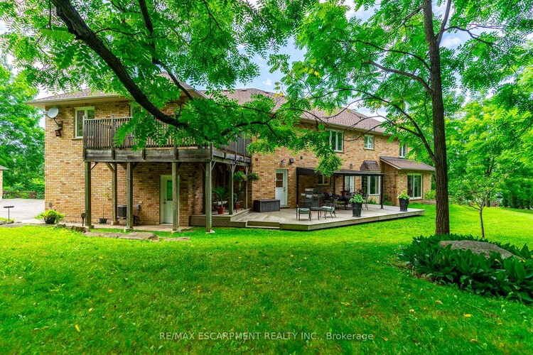 If you're a nature lover who is looking for privacy, while still being close to downtown Grimsby, the Bruce Trail and Niagara's wine country, this spacious home may be the one for you! Located on over 4.5 acres of land, this 3,375 sq ft custom built home offers 4 bedrooms, 3 bathrooms and 2 full kitchens with a seperate in-law/nanny suite that is located on the second floor. In addition, there is a full, 1188 sq ft unfinished basement that you can customize to your specific needs. Enjoy the views of the mature trees from every room in this natural light filled home or relax outside and enjoy summer evenings on the sprawling deck. An ideal home for relaxing and also a perfect home for entertaining- with an open concept, freshly painted main floor and direct entry to the beautiful backyard. The updated chef's kitchen features brand new countertops and stainless steel appliances including a commercial 6 burner gas stove, and overlooks the dining area and cozy family room with a fireplace. If you work from home, the convenient office overlooks the front yard where you will see a gorgeous willow tree. Upstairs, the oversized primary bedroom offers his/hers closets and a comfortable sitting area, in addition to two other spacious bedrooms. The unique upper level in-law/nanny suite provides privacy with a seperate entrance and balcony and its own furnace, central air and hot water tank. The huge laundry room features a seperate shower and sink and brand new Whirlpool washing machine and dryer. If you're looking for storage space- in addition to the 3 car garage with convenient, direct entry into the home, there is also an insulated brick workshop with 3 bay doors that is equipped with hydro and roughed in for gas. This unique home with a beautifully landscaped lot is truly a must see!