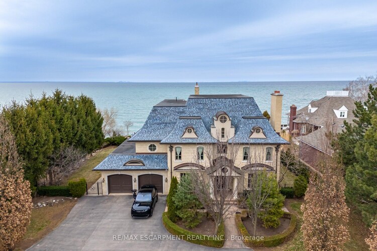 Waterfront. Private. Refined. Set along the shoreline of Lake Ontario, 5545 Blezard Drive offers a private waterfront setting in the heart ofLincoln. The property spans an impressive 115' x 682' lot, creating a sense of space and seclusion while capturing uninterrupted lake and skylineviews. The residence is designed for everyday living and hosting, with a well-balanced layout that includes formal living and dining rooms, acomfortable family room, and a private library. The kitchen is equipped with premium appliances and opens to a bright breakfast area, where adouble-sided fireplace connects the interior to the outdoors. From here, step onto the patio and take in the calm of the water beyond. Upstairs,the home offers five plus one bedrooms, each with its own ensuite and walk-in closet, well suited for families and guests alike. Outdoors, thewaterfront lifestyle takes center stage. A saltwater pool and cabana sit steps from the lake, with glass railings to preserve the view. A recentlyinstalled break wall adds shoreline protection and peace of mind. Completing the property are a circular driveway and an attached two-cargarage. This is a refined lakeside home where privacy, space, and setting come together in a way that is increasingly rare.