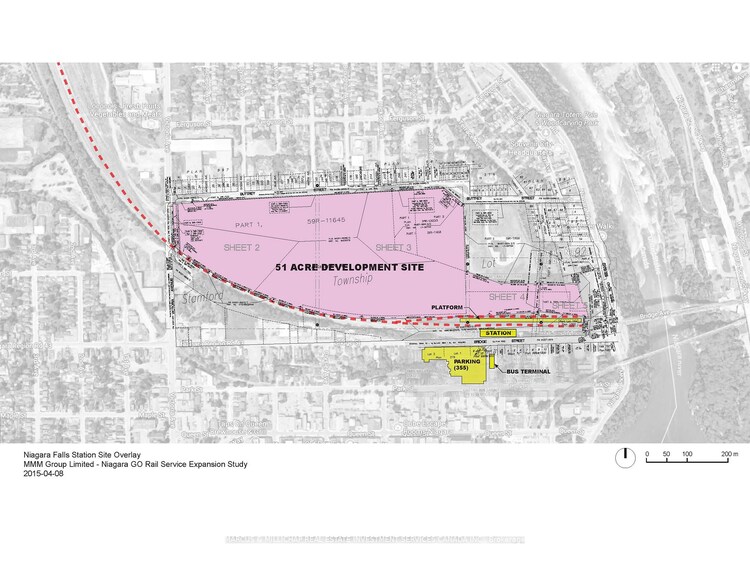 Power of Sale Opportunity. 51.6 Acres of prime development land in the heart of Niagara Falls. Existing GO station and VIA Rail station located directly south of the property. The site is located within the transit station secondary plan. Niagara GO Rail expansion plans for more frequent trains and connectivity to the greater golden horseshoe and Union Station in coming years. Site suitable for a wide variety of uses. Immediately adjacent to Whirlpool Bridge (USA Border Crossing). Minutes from Niagara Falls waterfalls, both casinos, Great Wolf Lodge, Whirlpool Golf Course, Royal Botanical Gardens, Butterfly Conservatory, etc.